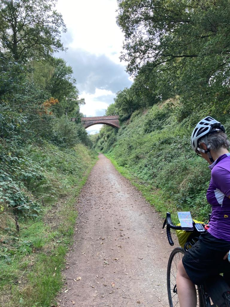 There were a few moments when we questioned the wisdom of the blessed Garmin. The access route to this admittedly glorious stretch of former railway was a narrow, stony, bramble-strewn track, ending in a steep flight of steps. Just as well I had a domestique to carry my bike down – though having returned the favour I realised I should have given him one of my panniers for the day.