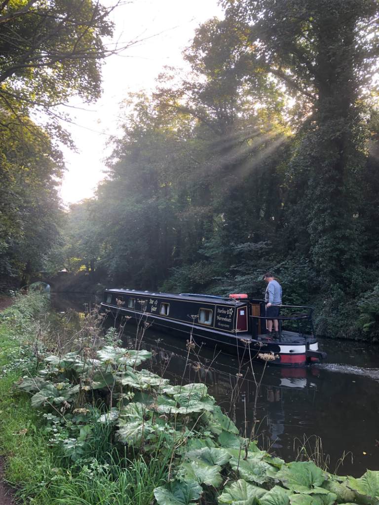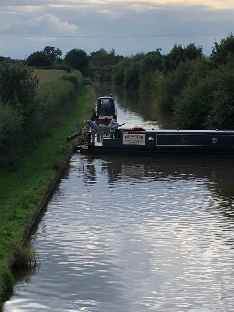 But my domestique leapt into action to help some amateur boaties who’d managed to wedge their craft Evergreen-style across the Shropshire Union Canal.