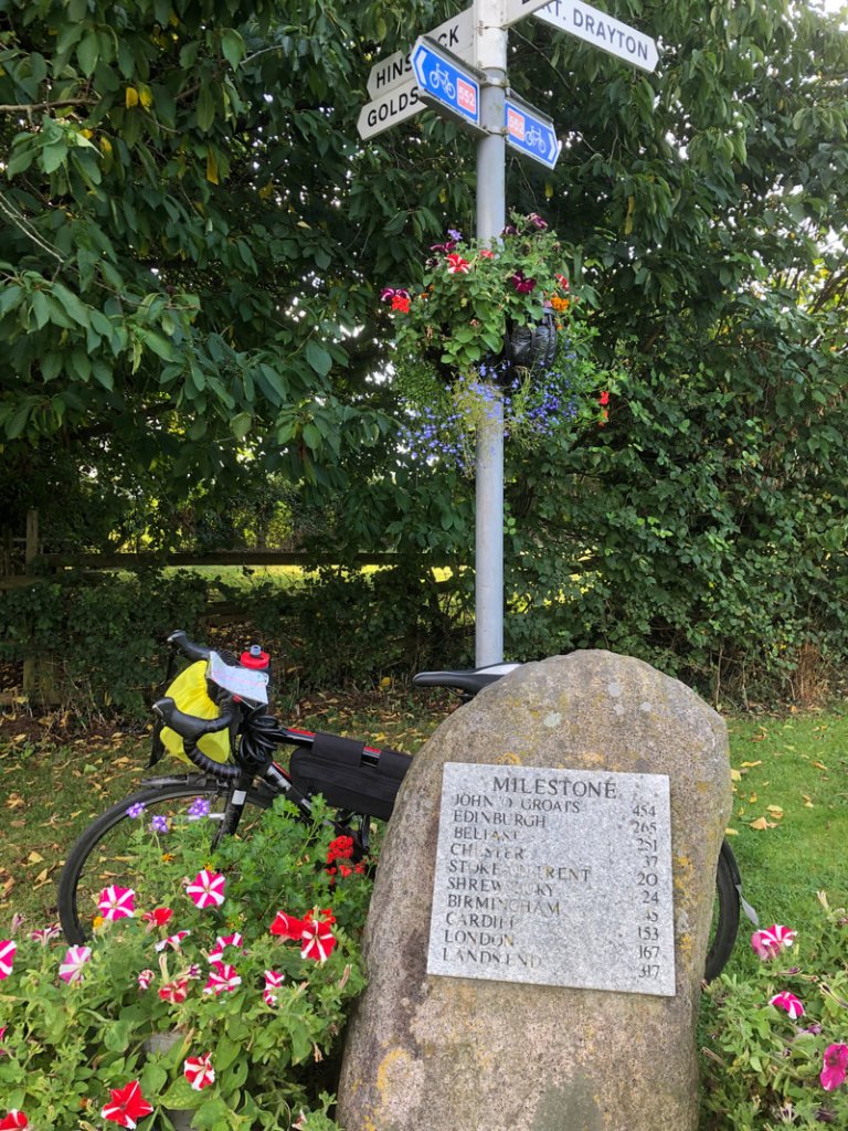 In a small village outside Market Drayton, I came across an encouraging milestone, but it wasn’t fooling me: on my route to John O’Groats, there’s still a lot more than 454 miles to go.