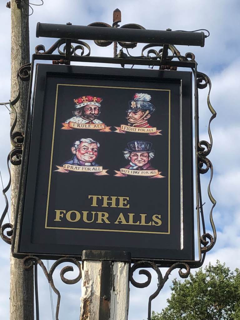 My stop for the night is the intriguingly named Four Alls Inn. All became clear with the sign.