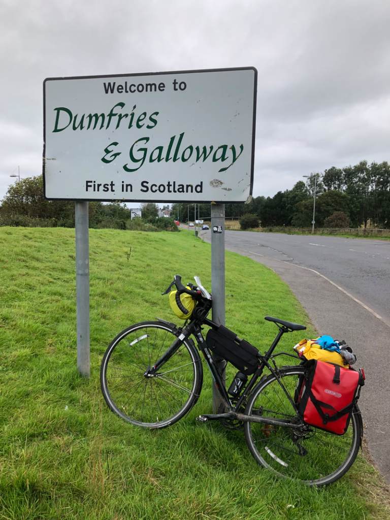 There’s been an element of Schrödinger’s cat about my approach to this bike ride, because I’ve always held two entirely incompatible thoughts in my head at the same time: first, that I would do it, and second that I couldn’t possibly. The latter has prompted many ‘I can’t believe I’m here’ moments, none more so than this morning, when I crossed the border into Scotland. How is it possible that I’ve pedalled all the way here from Cornwall? It’s crazy – I never thought I could (and yet I always knew I would…).