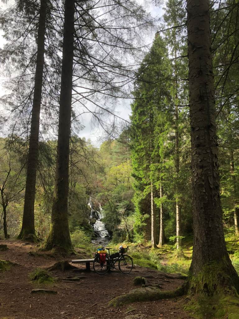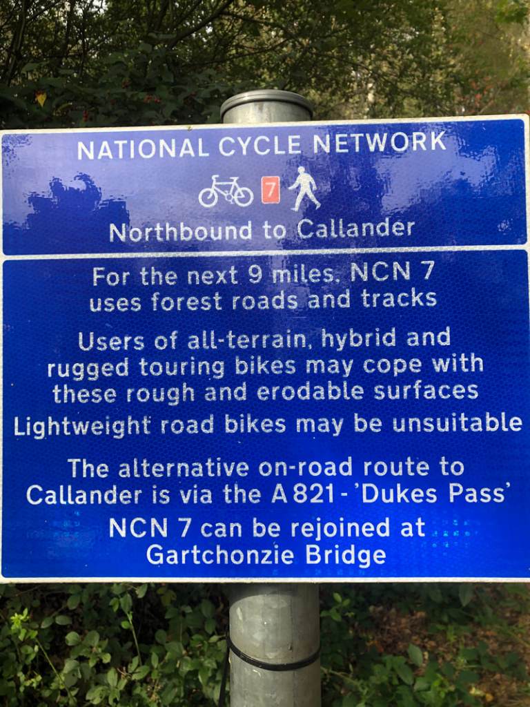 There are barely 20k between Aberfoyle and Callander but they took over two hours because of this little beauty. The suggested alternative was not a runner, being both an A road and many more miles. Luckily, my road bike turned out to be both lightweight (but laden) and rugged.