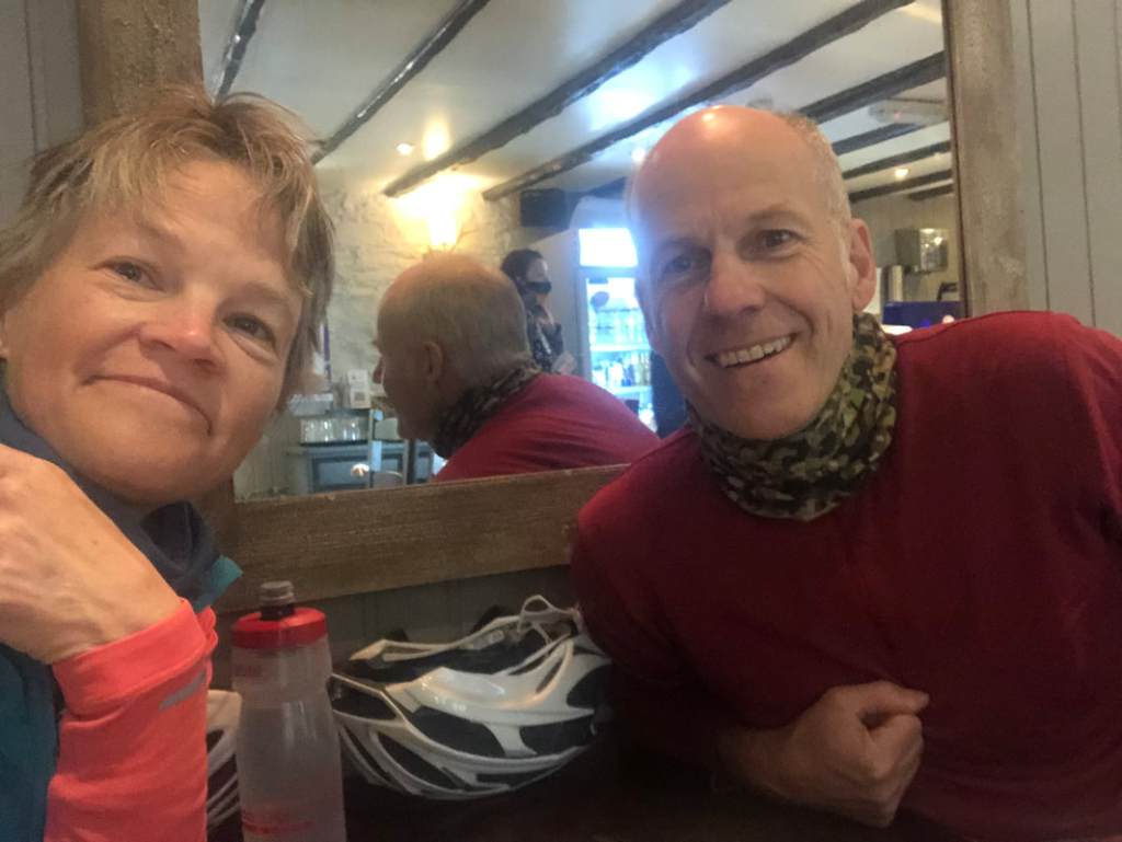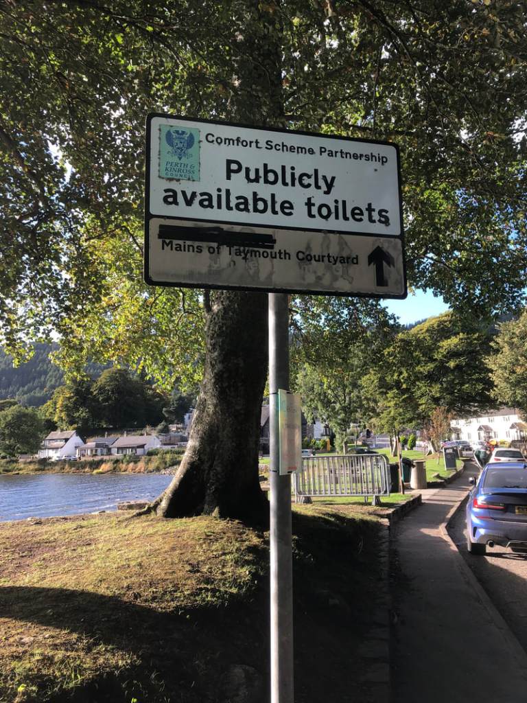 Finding nourishment (or just coffee) proved a bit difficult today: cafés, hotels and entire villages seemed to be closed. Mark and I made do with Nescafé and packet cake at the village shop in Lochearnhead, and in Killin we each consumed a scone the size of our heads. Besides that, my diet between breakfast and dinner consisted of a Tunnocks bar and a packet of peanuts. Which may explain why today felt like quite hard work, but I’m now much restored, thanks to the ministrations of the lovely people and excellent food at Three Lemons Bistro in Aberfeldy – I recommend!