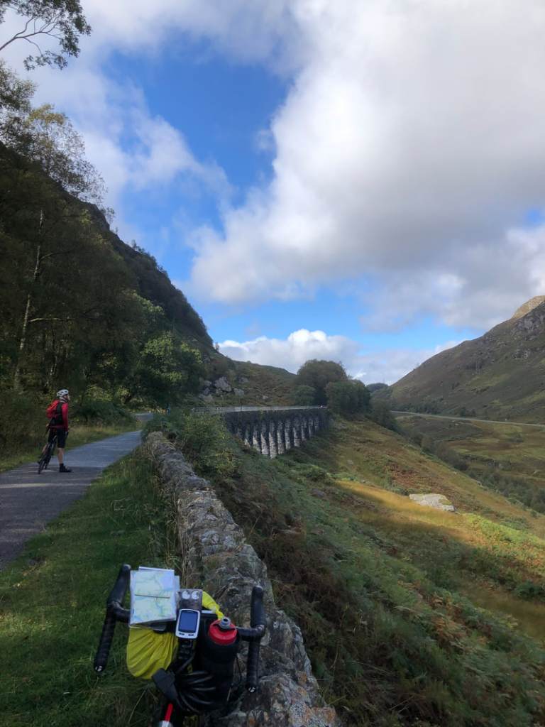 Over the viaduct of an old tourist train line and down into Killin, first on lovely smooth tarmac, then on a mud and stone track that appeared to have been carved out of the forest by heavy machinery – which caused a few interesting moments on my slick and narrow tyres.