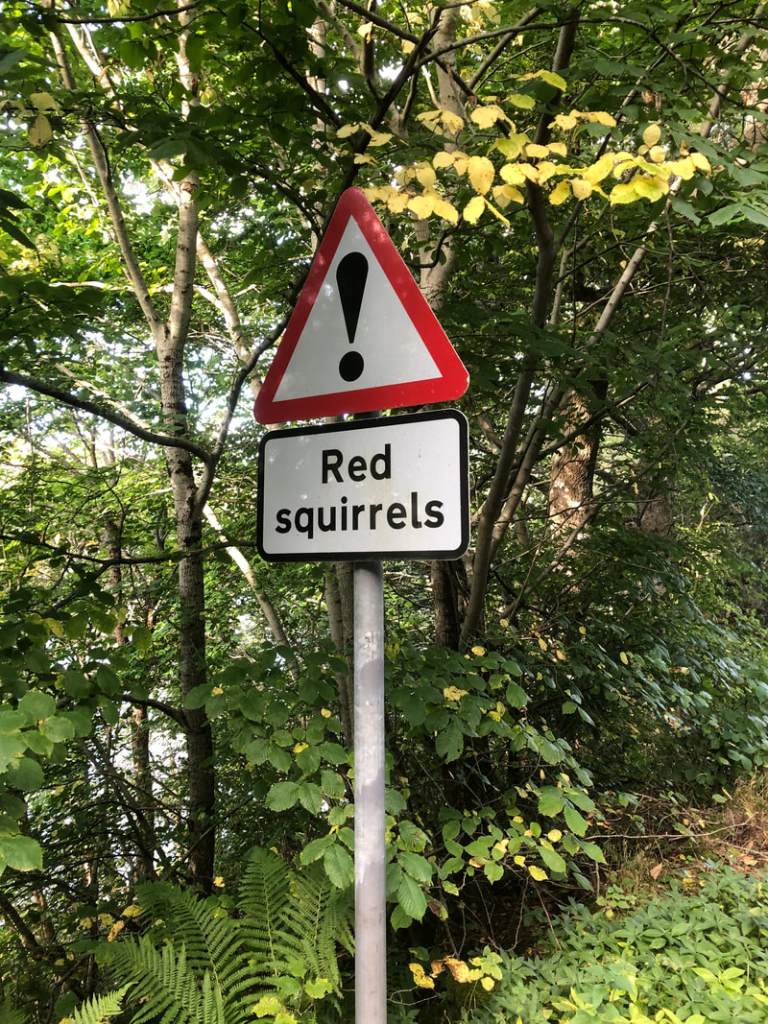 The only red squirrel I saw was squashed flat on the road, all four little feet akimbo, cartoon-style.