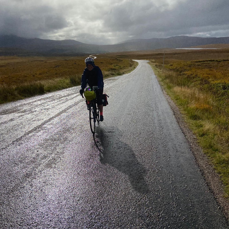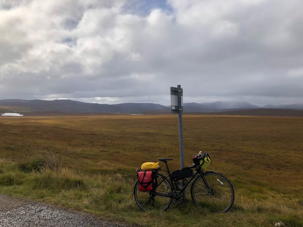 From Crask, we pedalled on into rain and a freshening wind through the wild and barren landscape of the ‘Flow Country’ – the world’s largest area of blanket bog. There really wasn’t much else out there.