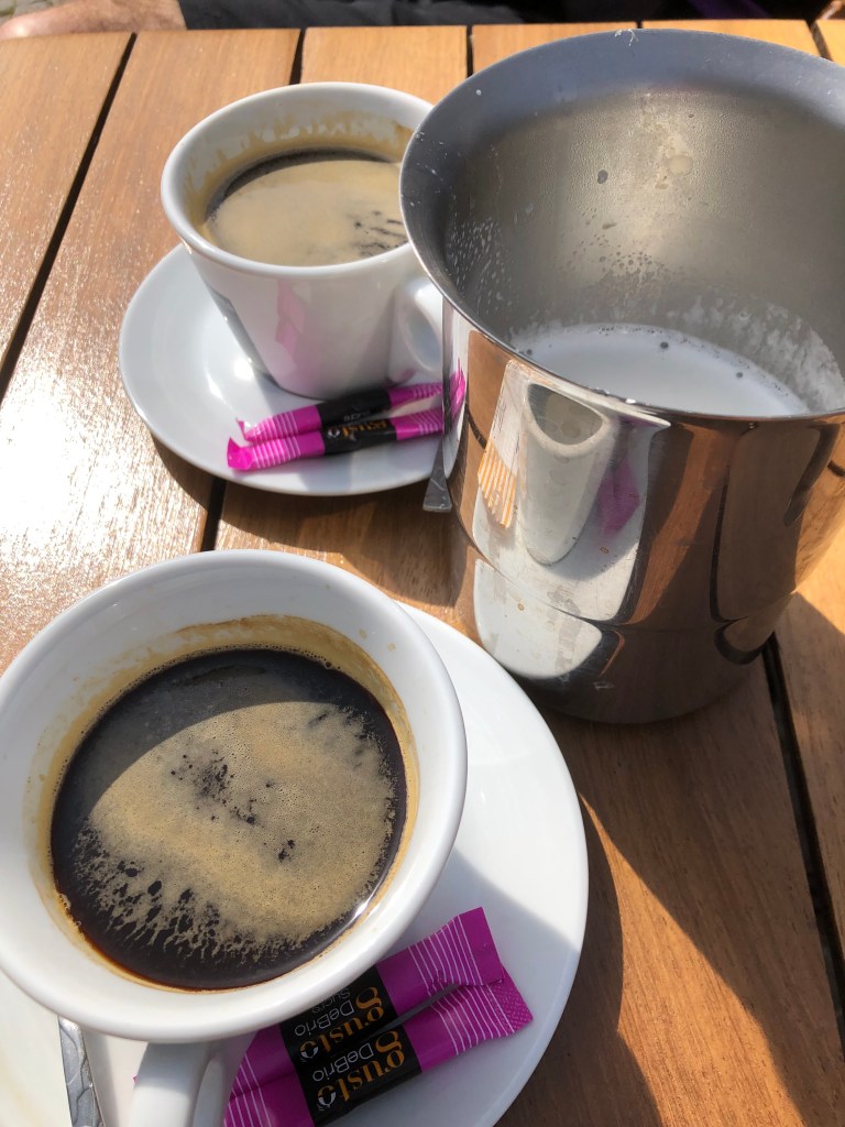 Despite the incongruous accompaniment, I’m pleased to say I finally nailed the coffee order…