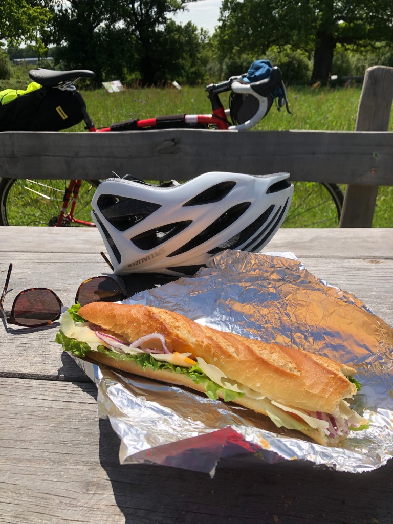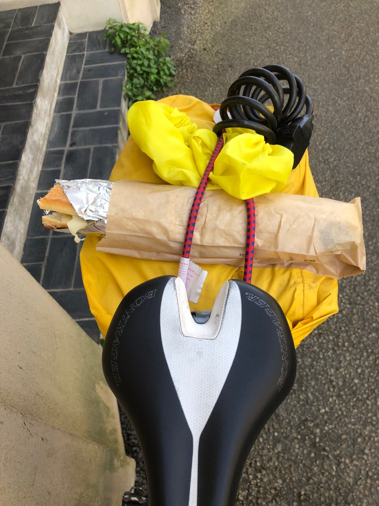 And the sandwich we picked up on our way out of town was so huge it needed its own seat on the rear rack.