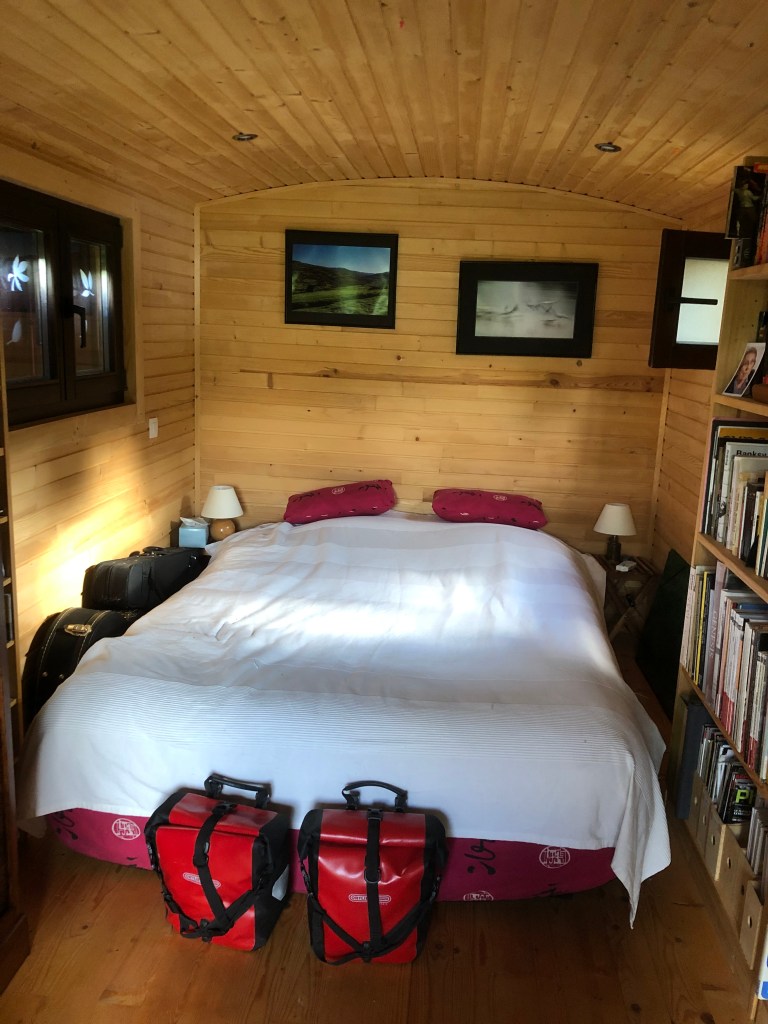 I’m tucked up tonight in their lovely shepherd’s hut, listening to the crickets, frogs and tawny owls (word of the day: chouette hulotte) doing their thing.