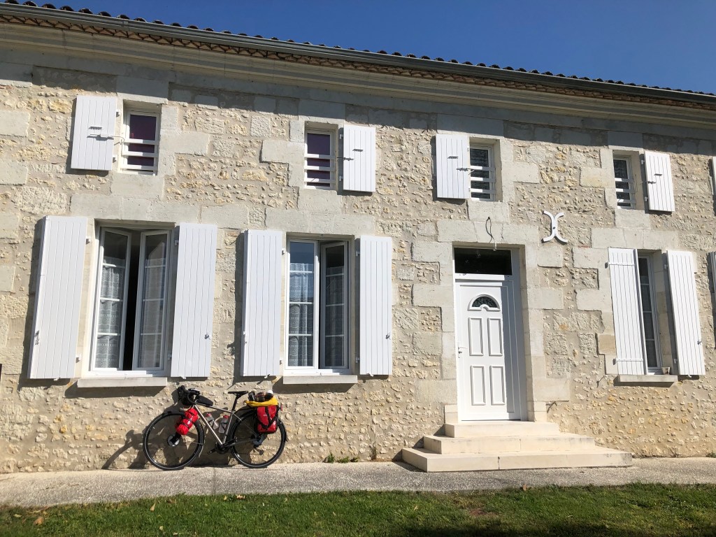 Meanwhile, my other companion was suffering from a very dry chain which was not good for him, and made work harder for me. I had not seen a bike shop since La Rochelle and assumed it would have to wait until tonight when I would be with my first Warmshowers hosts. I could not have been more surprised to come upon Jean Vannier’s workshop, in the middle of nowhere, opposite a vineyard. He kindly blew the dust off the chain with an air compressor, and applied the oil, while remarking “Vous avez un très beau vélo Madame.” He wished me “Bonne route, et bon courage” and as I rode away I could feel Bernard basking in the lubrication and admiration in equal measure. I hope he doesn’t get big headed.