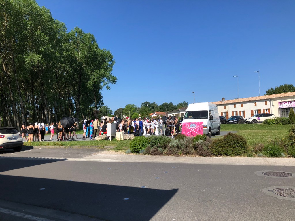 Incongruously, across the street, a rave seemed to be getting underway on the village green. Apparently it was an end of year party for the youth of Clérac and loud music, fancy dress, beer and blow up dolls were all in evidence. It was going to be a long day…