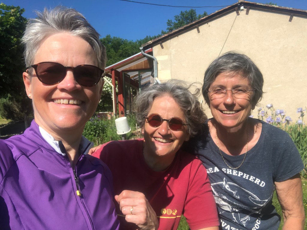 Meanwhile, as if in response to my comments a couple of days ago, I’ve actually had quite a few pleasant exchanges with folk since then. The trick seems to be just to stop and wait. So while standing or sitting beside the road, I’ve discussed the relative merits of Schwalbe tyres with a barrel chested French cyclist of a certain age (surprisingly, he confessed he’d had to enlist the help of the fire brigade to get his off his rims); I’ve lamented the map drawing skills of the (former) Mayor of Sainte Radegonde with a passing motorist; I’ve promoted the benefits of Warmshowers to a trio of Scotswomen, riding hired bikes from Bordeaux to Carcassonne; and I’ve had a slightly repetitive conversation with a fellow cycle camper tonight, whose catchphrase, in a strong southern accent is ‘Ça fait du bieng’ (it does you good).