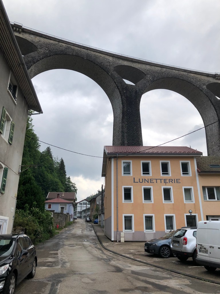 Followed by a whopping descent into the workaday town of Morez, which, aside from sporting an impressive viaduct, also seemed to specialise in making spectacles.