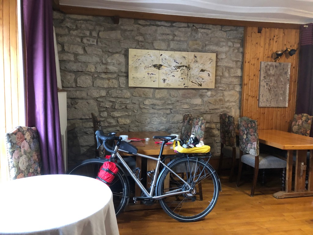 Bernard was a bit put out that only walkers and horses seemed to be welcome at this wayside inn:
