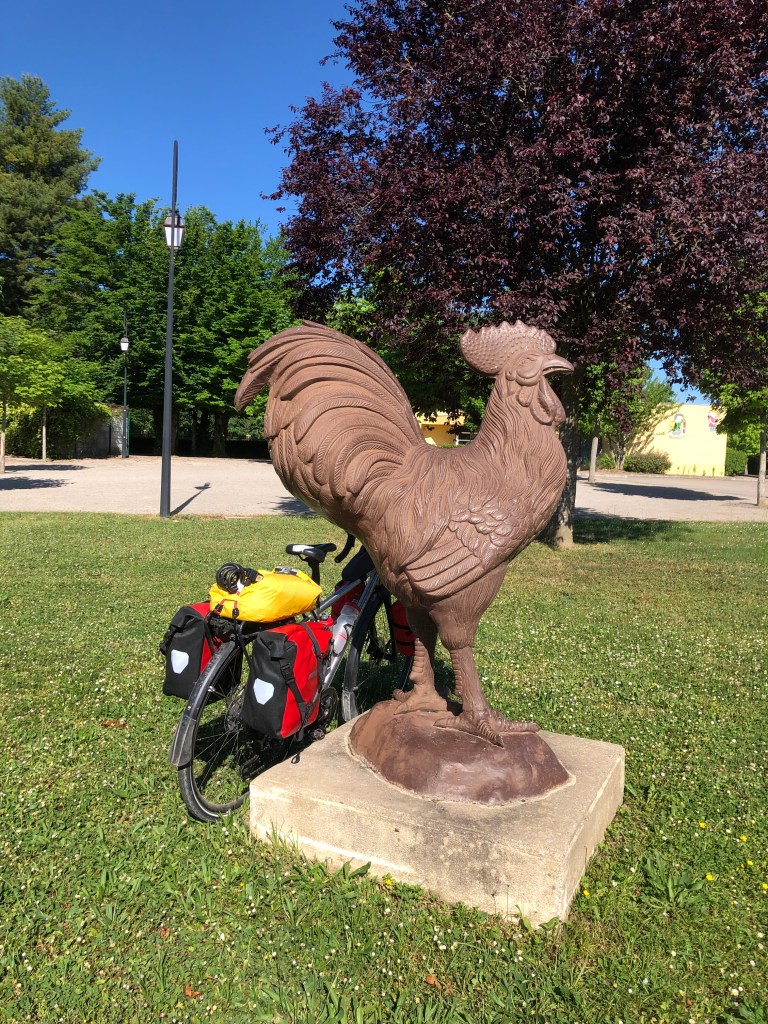 Louhans is the capital of Bresse Bourguignonne, and this morning I passed farms whose milk was designated Appellation d’Origine Protégée for Beurre de Bresse, and whose birds received AOP for Volaille de Bresse.