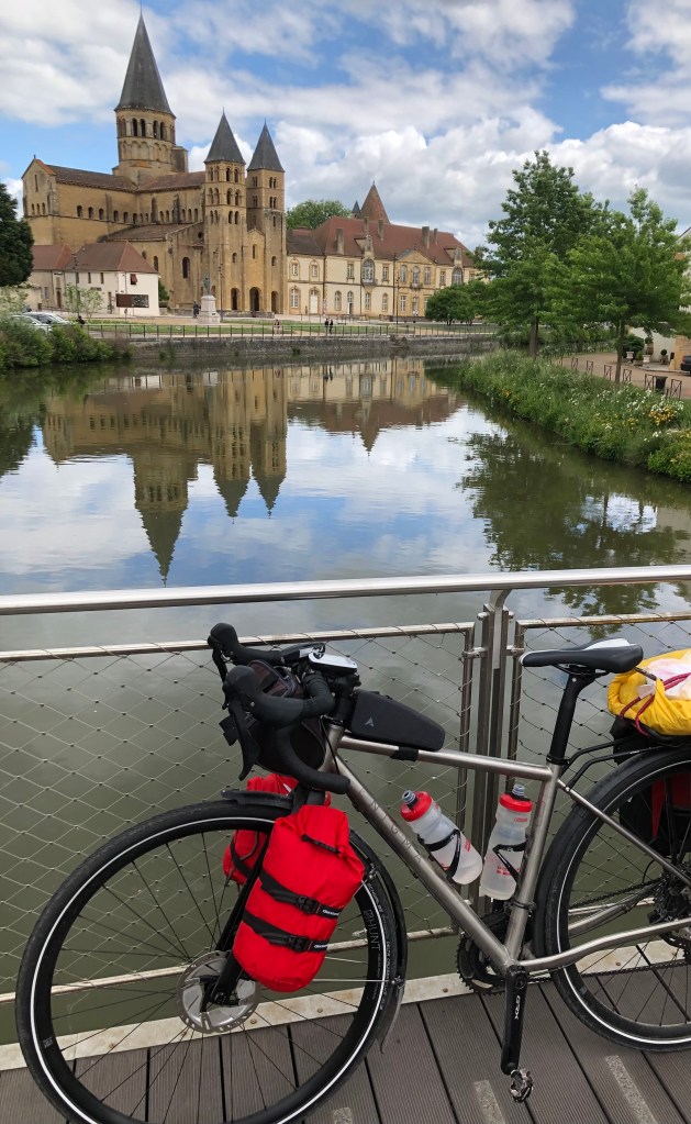 The last couple of miles to Paray, we joined EuroVélo 6 – aka The Rivers Route. Had we turned the other way and kept going, we would eventually have reached the Black Sea. Another day perhaps.