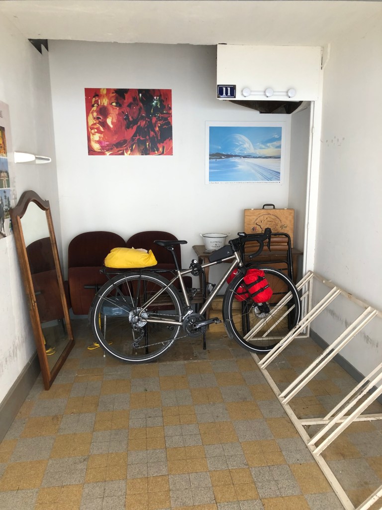 Meanwhile Bernard is tucked up in a garage with some surprising features. I hope he doesn’t spend the night wondering ‘Does my rear rack look big in this?’’