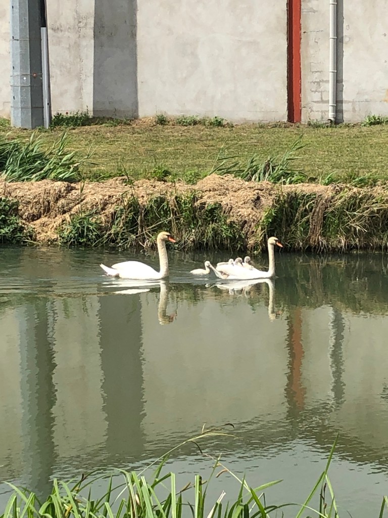 And a stoically patient swan carrying three argumentative youngsters along the canal: