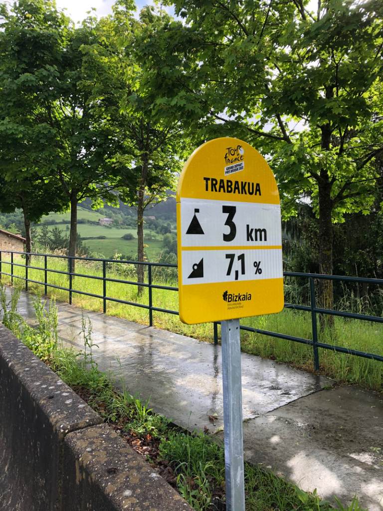 And finally we reached the first col of the day. According to a sign we passed shortly afterwards, Trabakua is actually 440m high, not 427m, but let’s not quibble. And in case you’re wondering, the top number is the distance from the official start of the climb to the summit (ie 5.45k).