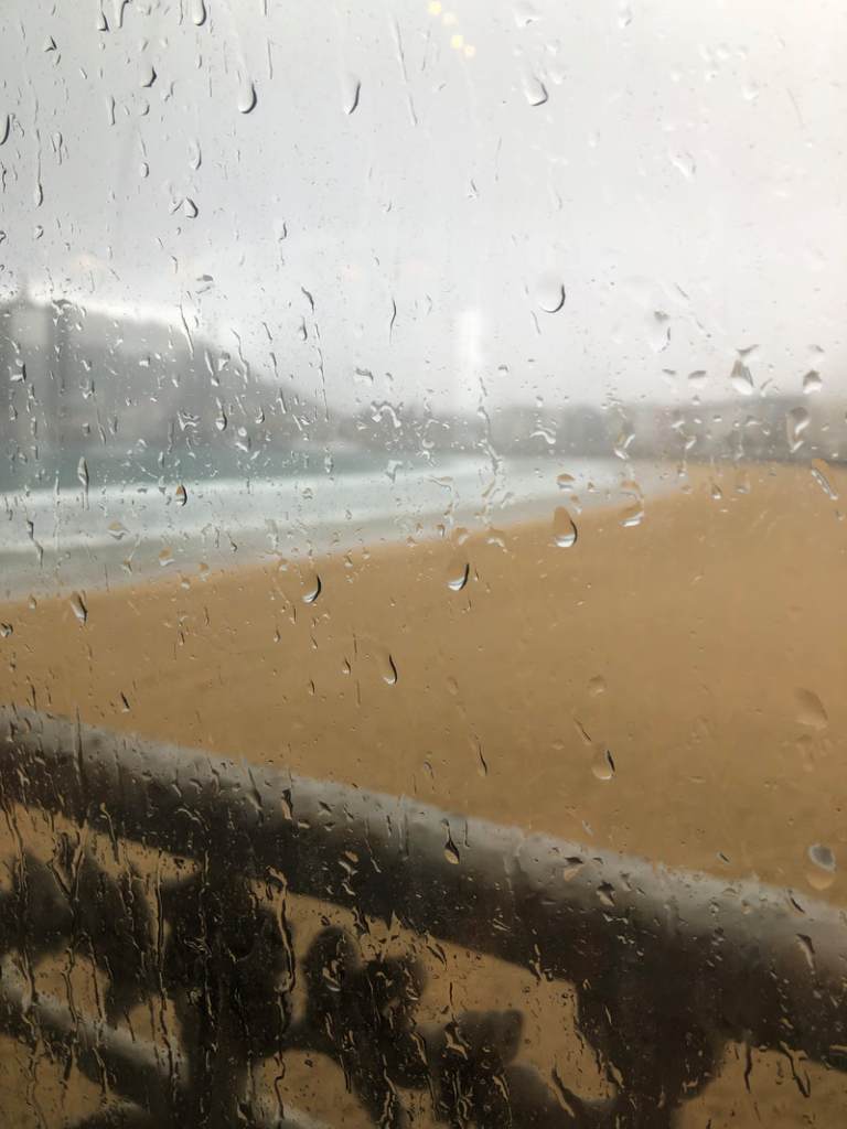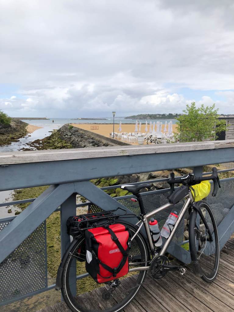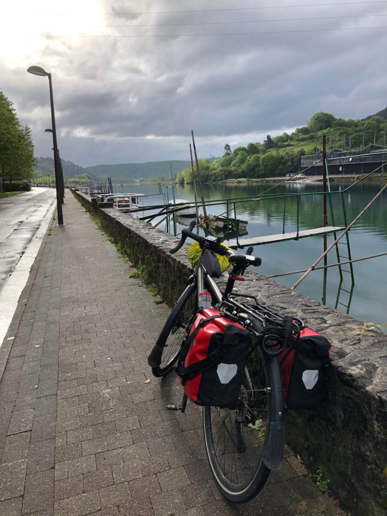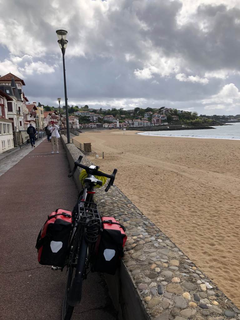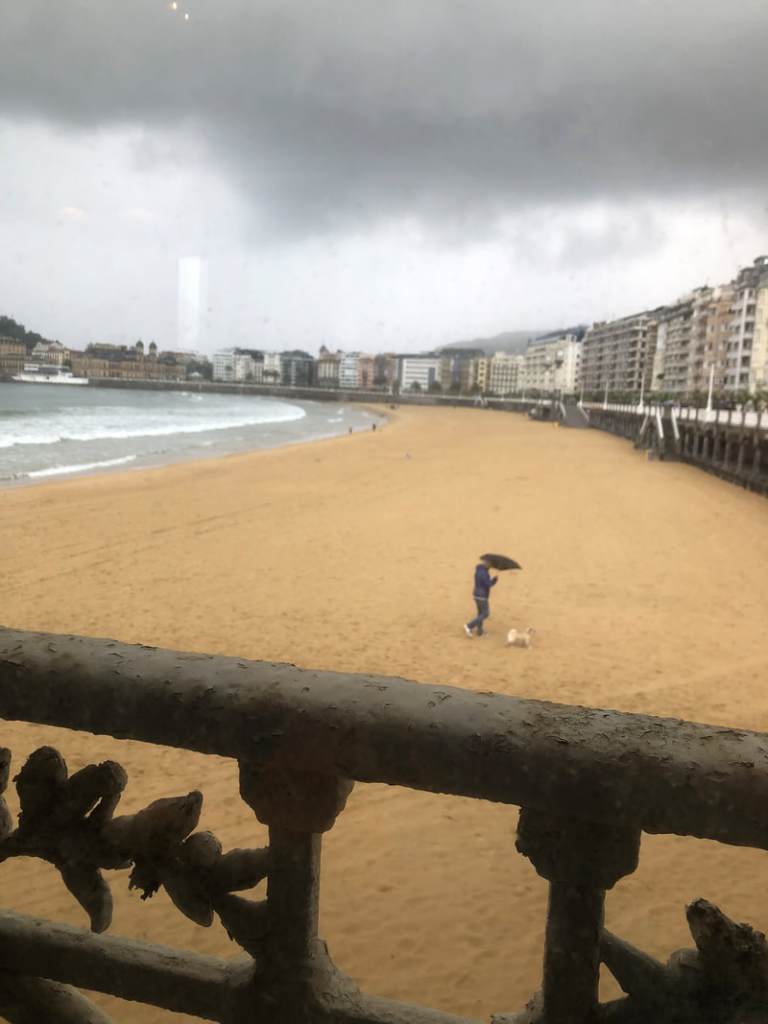 Meanwhile, Bernard had been looking forward to a visit to the seaside, but once again his bucket and spade remained in his panniers (and our waterproofs remained firmly on): San Sebastián really wasn’t looking her best: