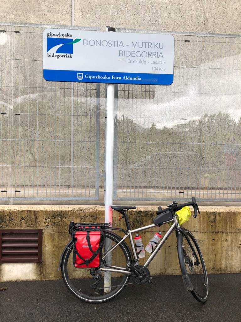 Guillaume had another darstardly trick up his sleeve today, involving a long, suspiciously unpaved section through open country. But after our experience in the eucalyptus forest, Jon had the measure of him. We re-routed along a perfectly good road that hugged the river valley and then joined a fantastic cycle path which took us all the way into San Sebastián – or Donostia, as the locals call it. Bidegorria is Basque for cycle path.