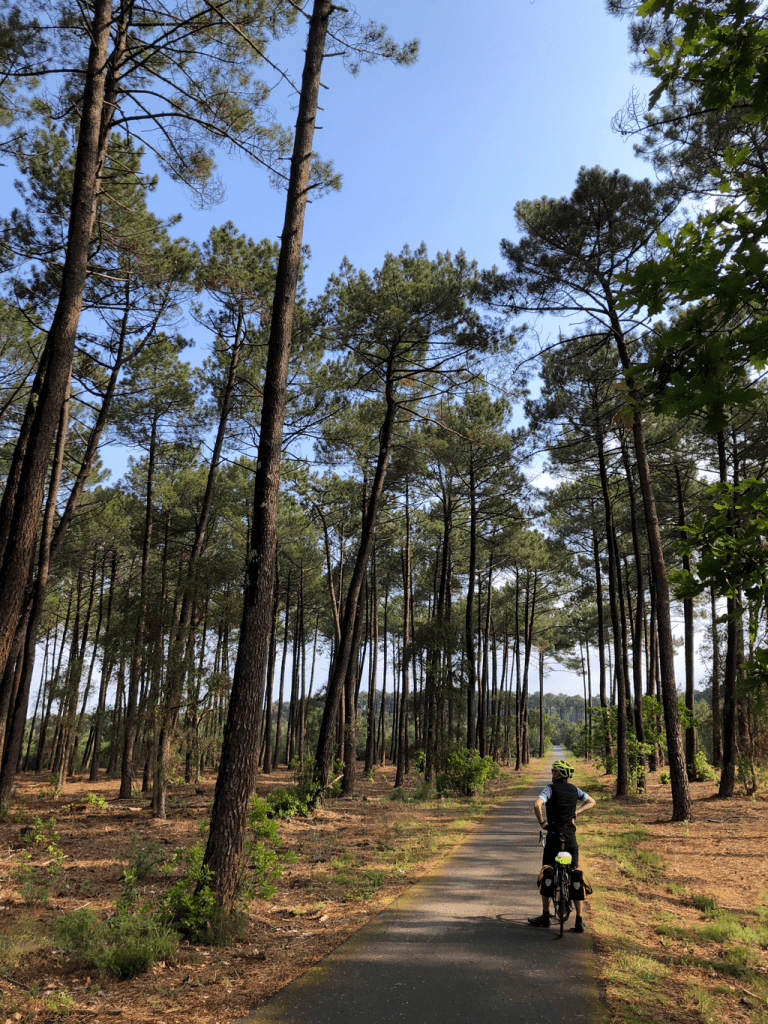 Having hugged the coast since crossing the border at Hendaye, I will head inland tomorrow and don’t expect to see the sea again till I pedal into Dunkirk on 1 June. While we’ve enjoyed a rest from hills over the last couple of days, we won’t be all that sorry to have a change of scenery. Today we again saw a lot of mature pine trees: