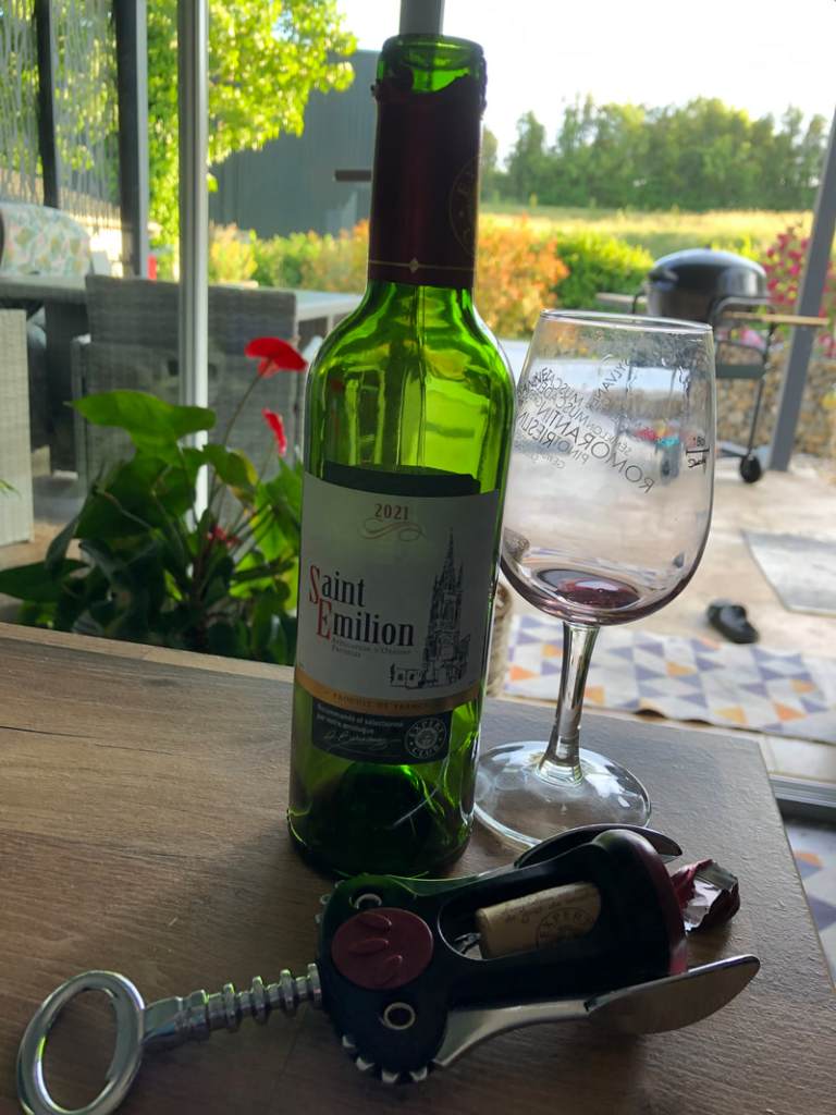 Tonight we’re in a Chambre d’hôte. Colin and Bernard are tucked up in the garden shed and we’ve just enjoyed a picnic supper consisting mainly of carbs in various guises. When it came to beverages, the decision was straightforward: