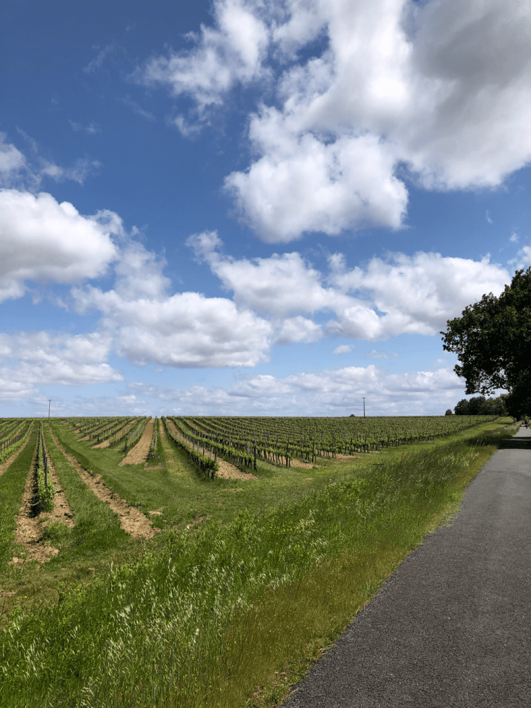 As the crow flies, our destination lay north east of Bordeaux, but Guillaume took us on a wide loop to the south and east first. For once, we weren’t complaining: with cycle paths as well- maintained and inspiring as this, it would’ve been churlish not to take the scenic route: