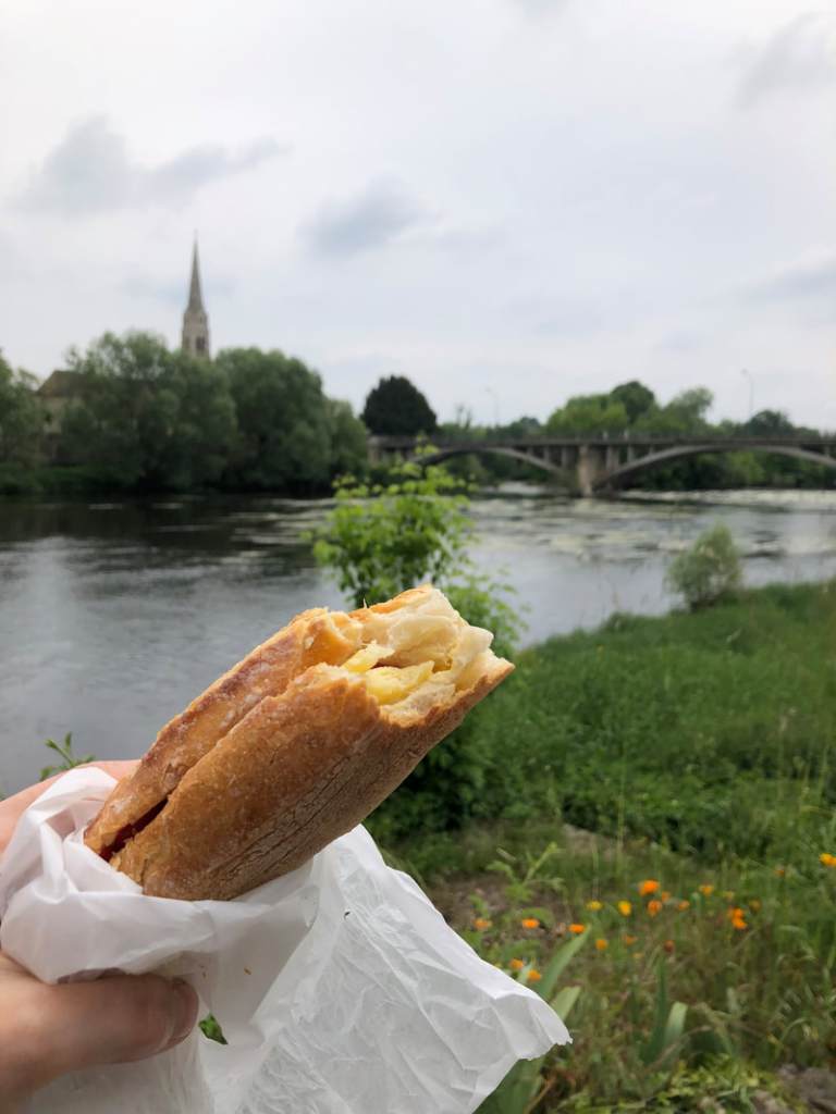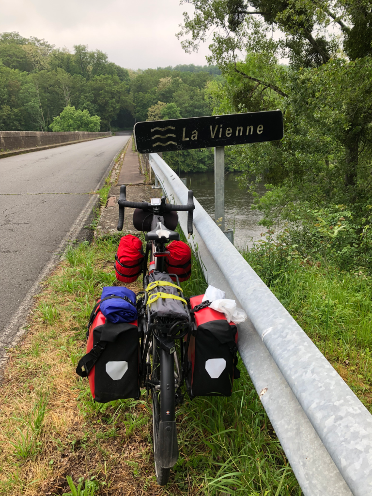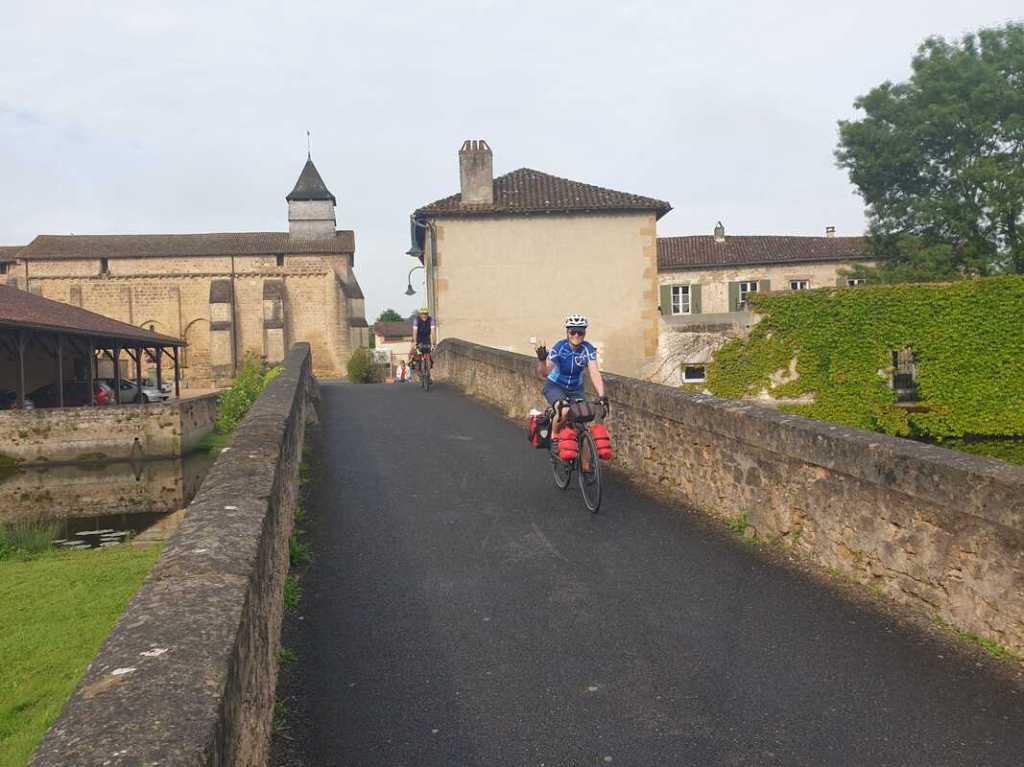 At L’Isle Jourdain, we could have crossed the Vienne on a zip wire, but Bernard preferred to keep his wheels on the ground and take this spectacular viaduct instead. It’s reserved for cyclists and walkers, and took us back to the EuroVélo 3.