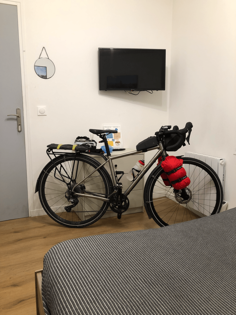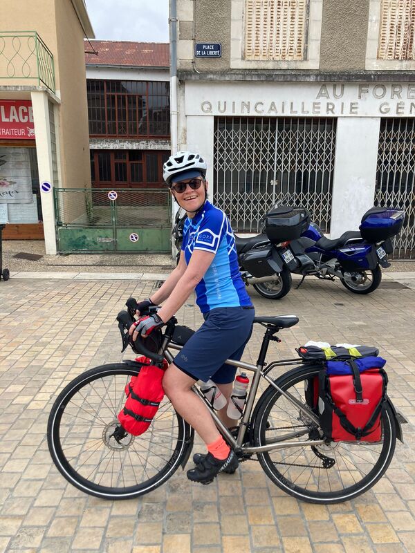 But Bernard was raring to go. He is back to his full complement of luggage: one advantage of meeting friends mid-tour is that they can sherpa your camping gear over for you (thanks Slynn).