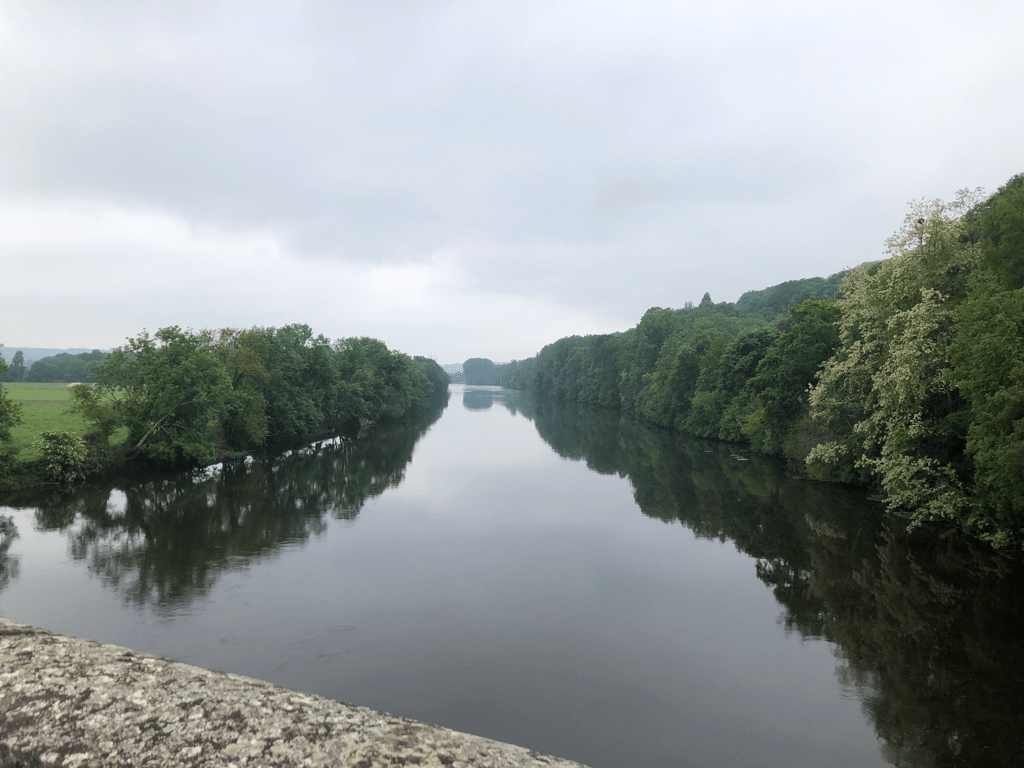We pedalled north through rolling farmland, crisscrossing another fine river.
