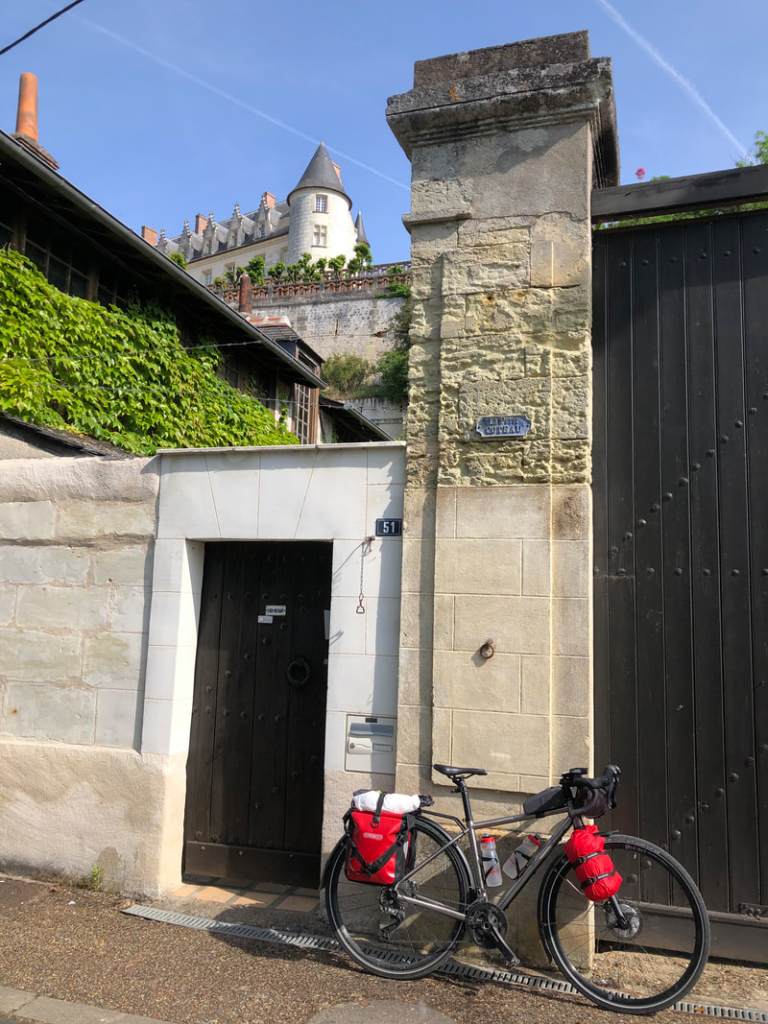 But if today is anything to go by, it’ll have been worth it – though I realise it’s a little early to say. When I explained to a local cyclist near Tours that I was riding ‘Du Pays Basque au Pays Bas’ (credit M. Porter), she said with a smile: ‘Ah, vous n’êtes pas arrivée alors’. Not quite, no, but for the moment I’m just pleased not to have Gone with the Wind. Tonight I’m staying just behind and to the left of Vendôme’s imposing gatehouse, awaiting the weather forecast with the courage of Dorothy’s Lion.