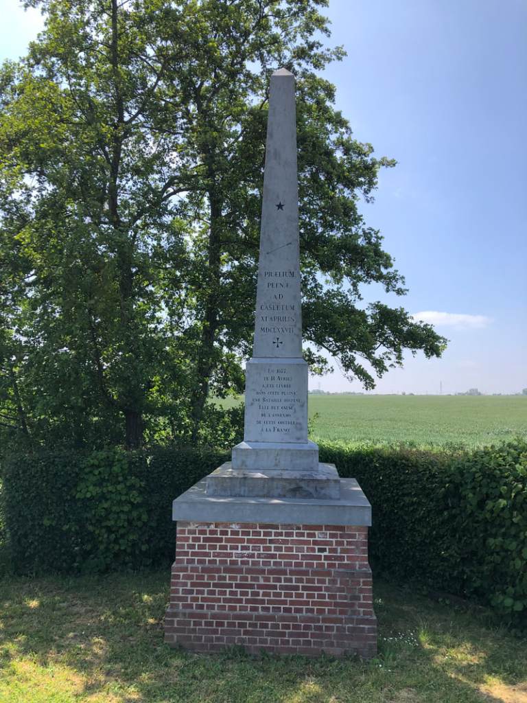 It’s not just the conflicts of the last century that are remembered. This memorial outside the town of Noordpeene commemorates a significant battle in the Franco-Dutch war of 1677, in which Louis XIV wrested control of (French) Flanders from William of Orange.
