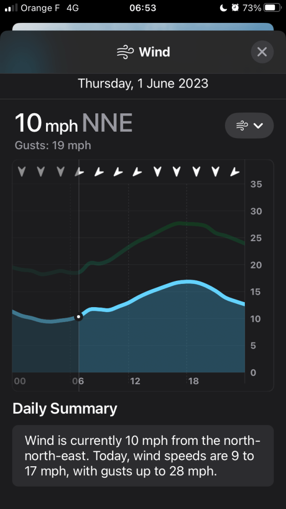 Dunkirk is due north of Auchy, so I’ll give you one guess which direction Mr Blowhard was coming from today, at more or less the same strength as yesterday. Thankfully, due to cooler air and the general absence of hills, it was altogether a much better day on the bike.