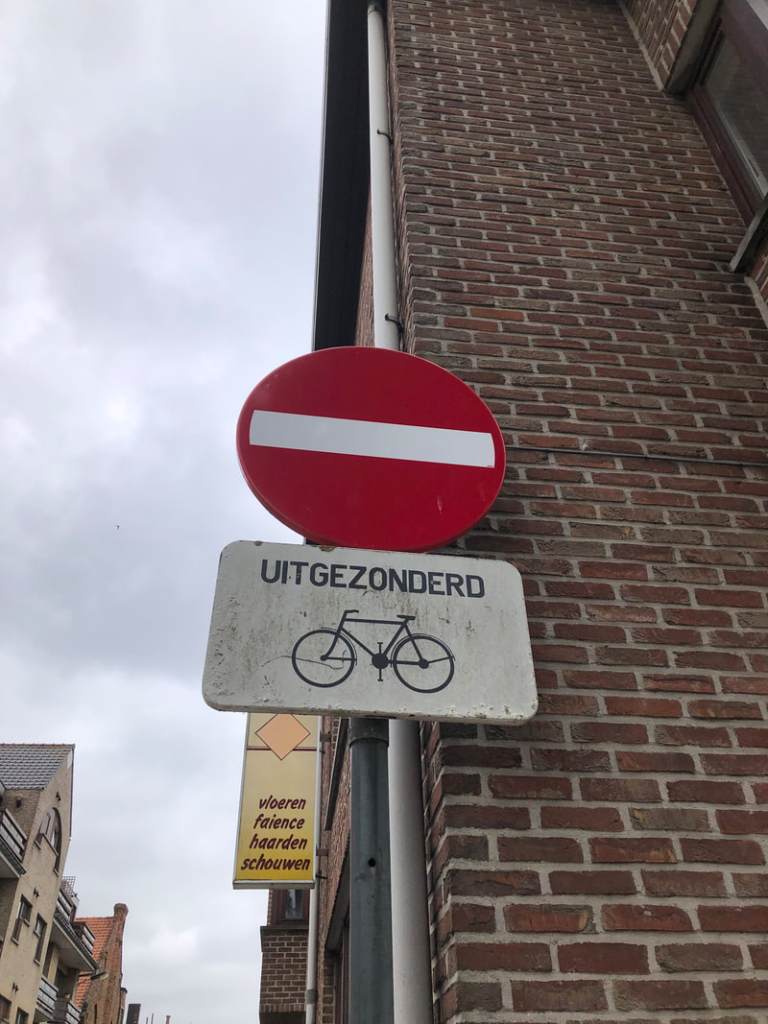 But the differences weren’t just in the language. There was an immediate change in how other cyclists behaved. In France, I’d become accustomed to a reciprocal Bonjour, usually said with a smile, sometimes a wave. From my observations today, I would say that Belgian cyclists prefer greetings to be non-verbal, if at all. I quickly learned that, at most, I might receive a barely perceptible nod, but almost never a smile. Maybe it’s just that there are so many more of them – because it’s true that there are bikes everywhere – so it just seems weird to greet other cyclists. Why are there so many? Well, take the infrastructure for a start: if I thought France was good, Belgium is on another level entirely. Separated bike paths are everywhere, and cars give way to the flow of bikes: