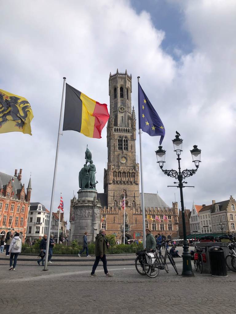 Though in Bruges, I found the volume and confidence of cyclists a bit intimidating after so much time on my own in rural France. No one wears helmets, they all know where they’re going, and they give no quarter to dithering visitors. I repaired to the main square for a calming hot chocolate in a cafe with a fine view