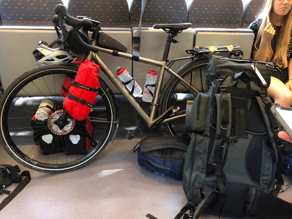 I was just having an emotional crisis of my own at the thought of an unscheduled 40k ride to Maastricht when we got underway again, but Belgian trains were not done with me yet. When we arrived at Liège, the step-free door stayed inexplicably closed. Remember those internal steps? I had to rapidly divest Bernard of his panniers, race up the steps, down the ones to the platform, and repeat the process for Bernard, all the while hoping the train wouldn’t leave with him still on it.
