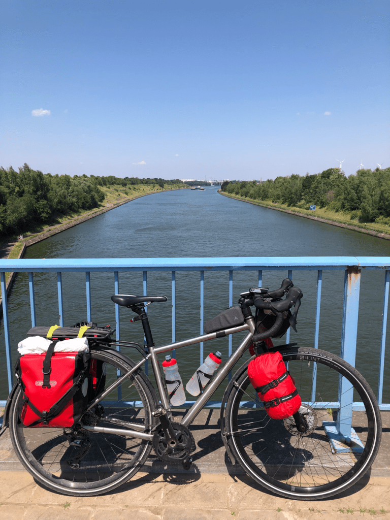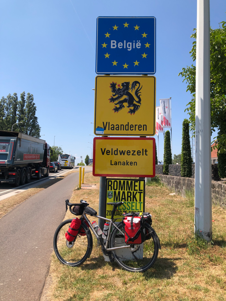 There was nothing at all for those travelling in the other direction, so instead here’s a picture of Bernard on the Albert Canal, which marks the border