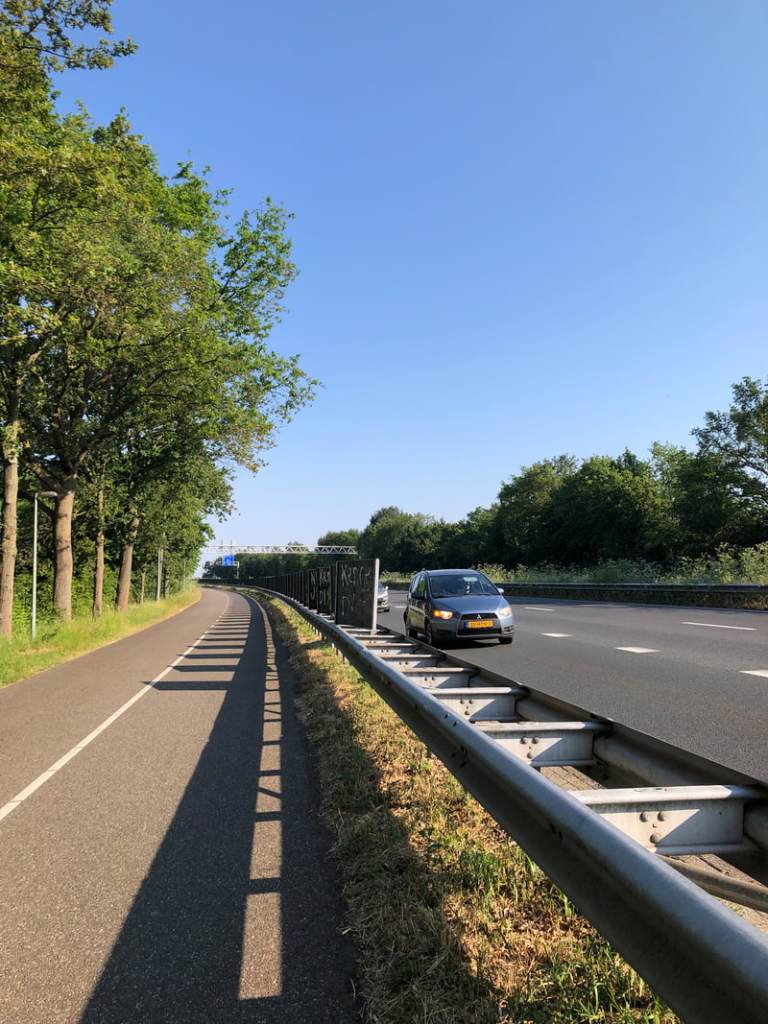 The road and cycle path designers had even thought to plant trees, so that on a hot day like today you could often choose a shady side to ride on