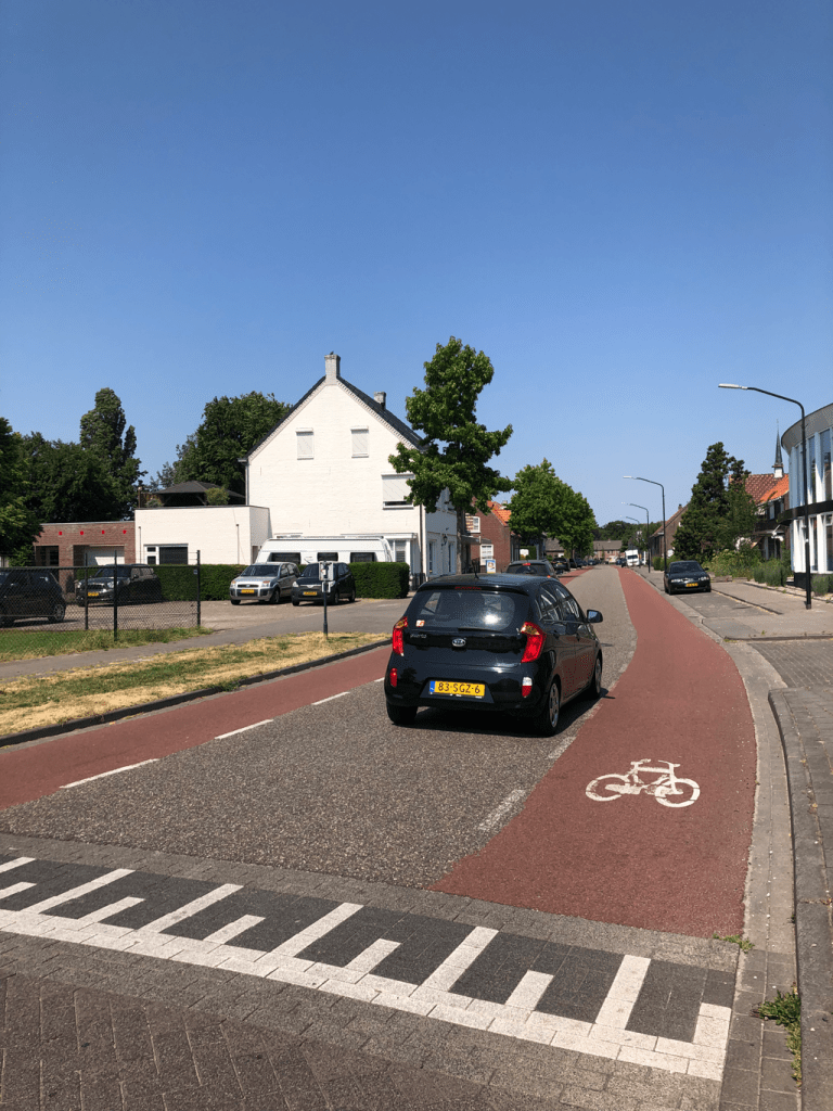 In towns, bikes and cars often share the space, but vehicles are squeezed into one central lane which effectively gives bikes priority: