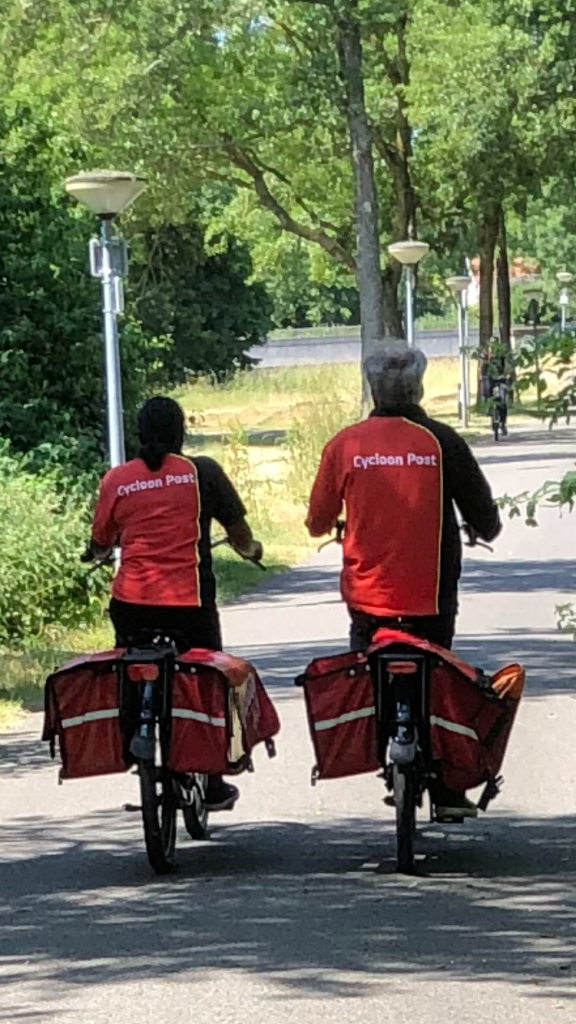 Two postal workers provided today’s addition to my growing collection of ‘Dutch people riding side by side’ photos