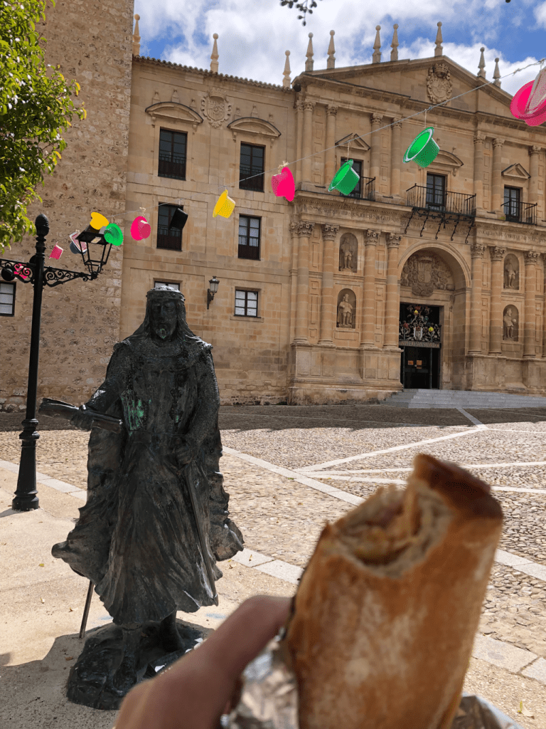 In the pretty town of Oña, we ate our lunch (tortilla sandwiches with an obligatory addition of bacon – vegetarianism is difficult in Spain) on a sunny bench beside a former convent. I’m afraid I’m not too sure who the statue commemorates – hunger overcame my curiosity.