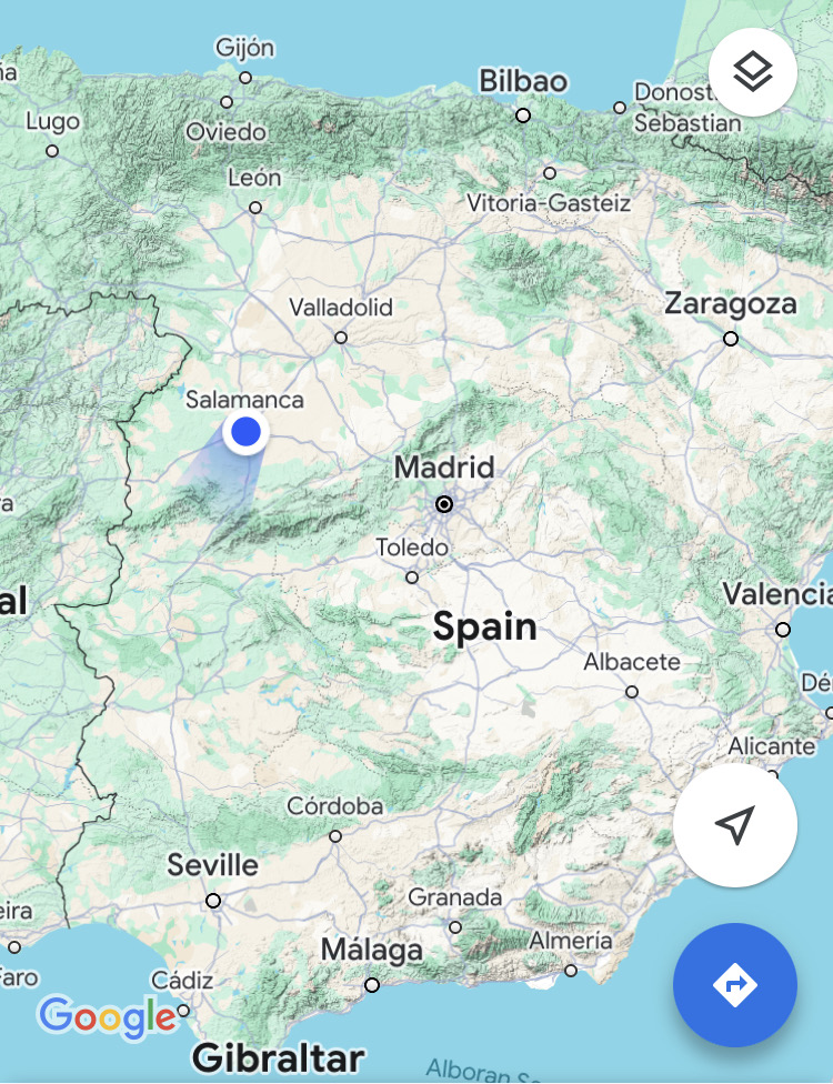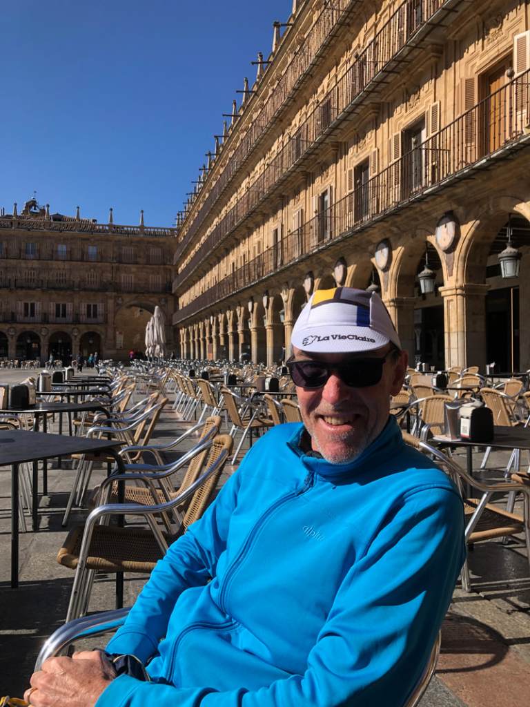 Six days of riding have brought us from the north coast to within sight of the mountains west of Madrid. And if we’re not mistaken, it looks like they may have snow on them. Which is a little concerning, given that our route tomorrow climbs to a height of 1,100m above sea level.