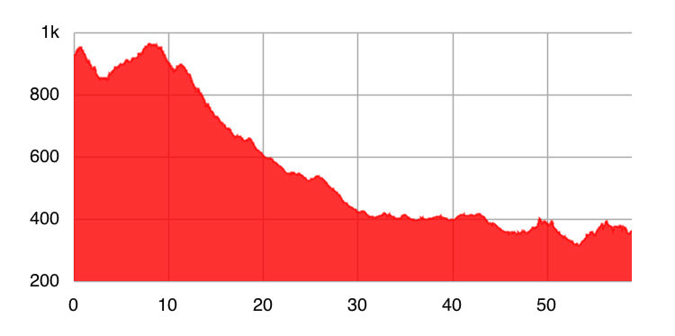 It’s a bit misleading to talk about how far we climbed today because the more important figure was the 1,045m we descended. Sometimes we freewheeled for so long it felt like cheating: