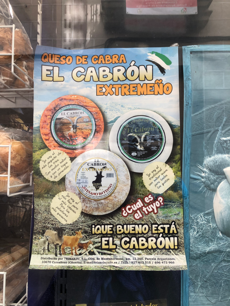 Finally, one for Spanish speaking readers, because this advert for a brand of goat’s cheese defies translation, but it made us laugh (the joke is in the fact that un cabrón extremeño could mean either ‘a big male Extremaduran goat’ or ‘a bastard from Extremadura’):