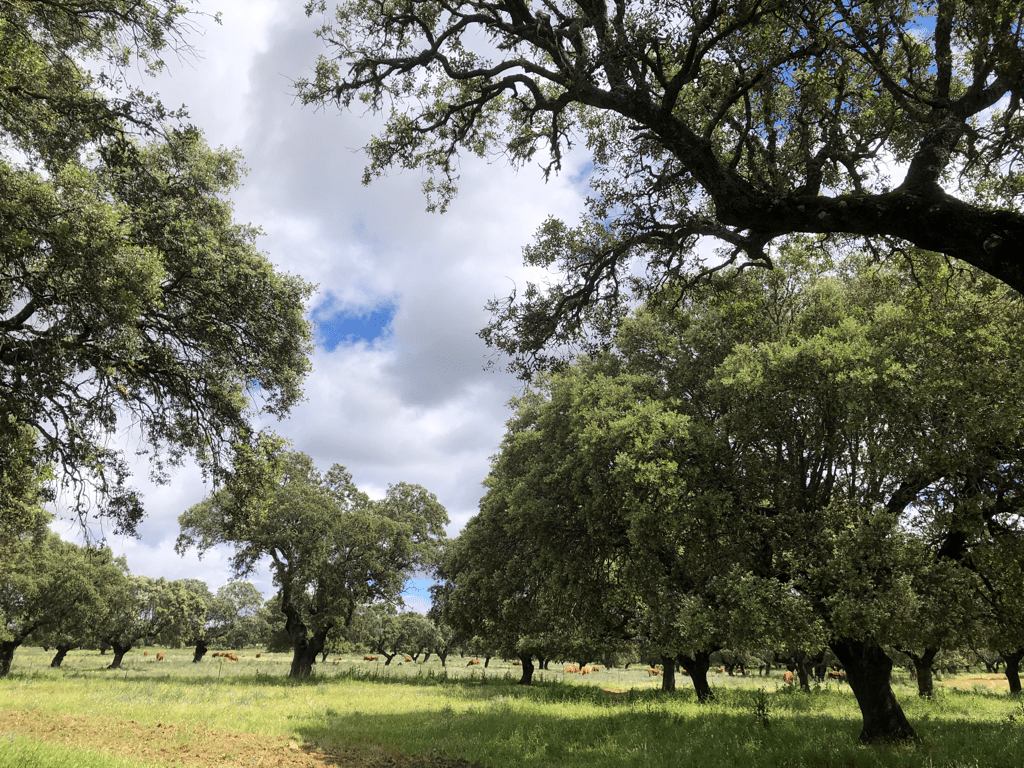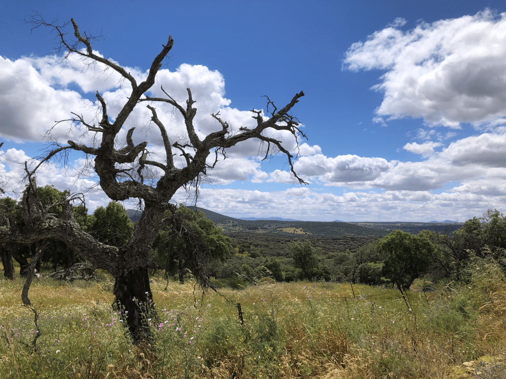 When we weren’t stopping to gape at flower-strewn meadows, or empty tarmac stretching away under cloud-dappled skies, or vast plains fringed by distant mountains, there was Extremadura’s classic dehesa: