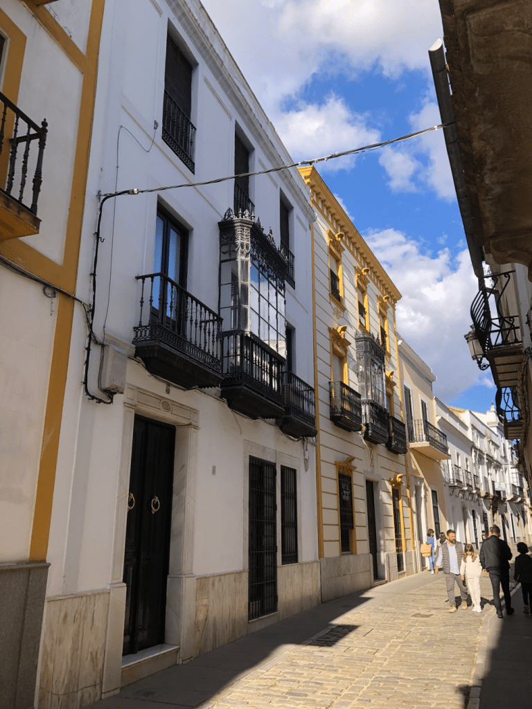And that’s how we stumbled across Zafra’s lovely old town, with its narrow streets and white washed houses, many of them with attractive glazed balconies: