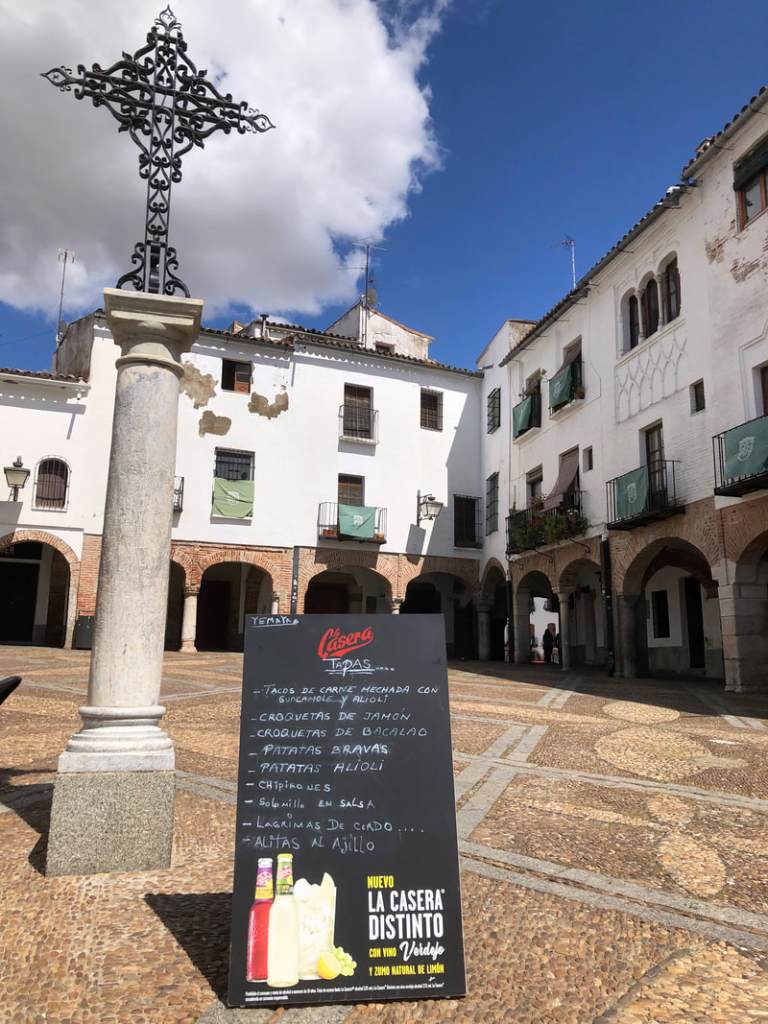 I knew nothing about Zafra before we arrived this afternoon, and had very few expectations. In my mind it was just a convenient stopping off point between more significant and exciting places. But that’s the beauty of these trips: they can reveal hidden (to me) gems. Looking for our guest house, I glimpsed a pretty view through an arch: