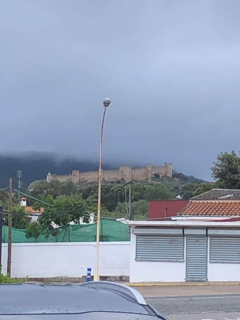 Overnight, rain hammered on the terracotta roof tiles directly above our heads. This morning, in our windowless sitting room, it was hard to believe the weather could have improved, but when we opened the door we found the cycling gods were smiling on us once again. They even laid on the best value breakfast of the trip so far, and a better view of the castle.