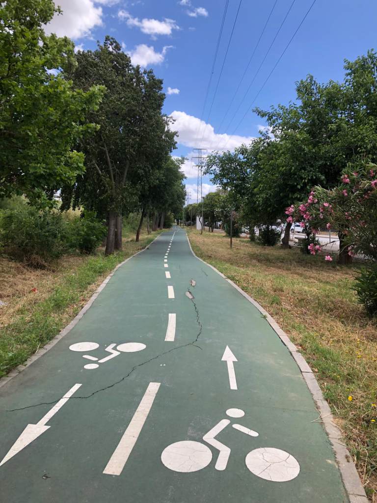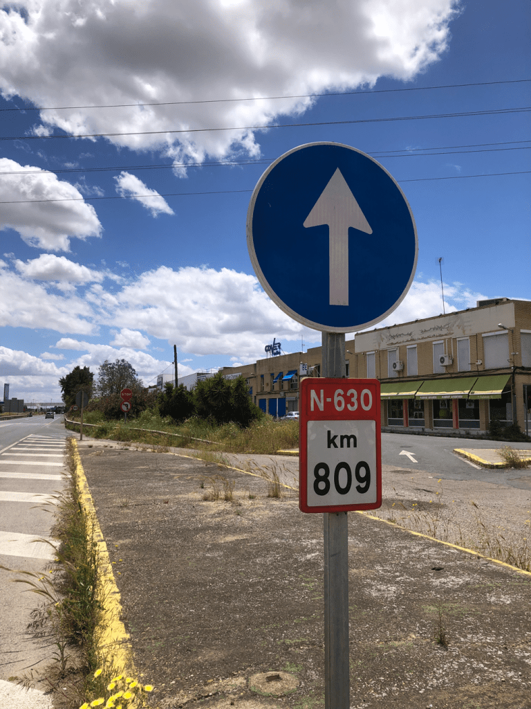 In the outskirts of Sevilla, we parted company with the N-630, which had carried us 395km since Béjar